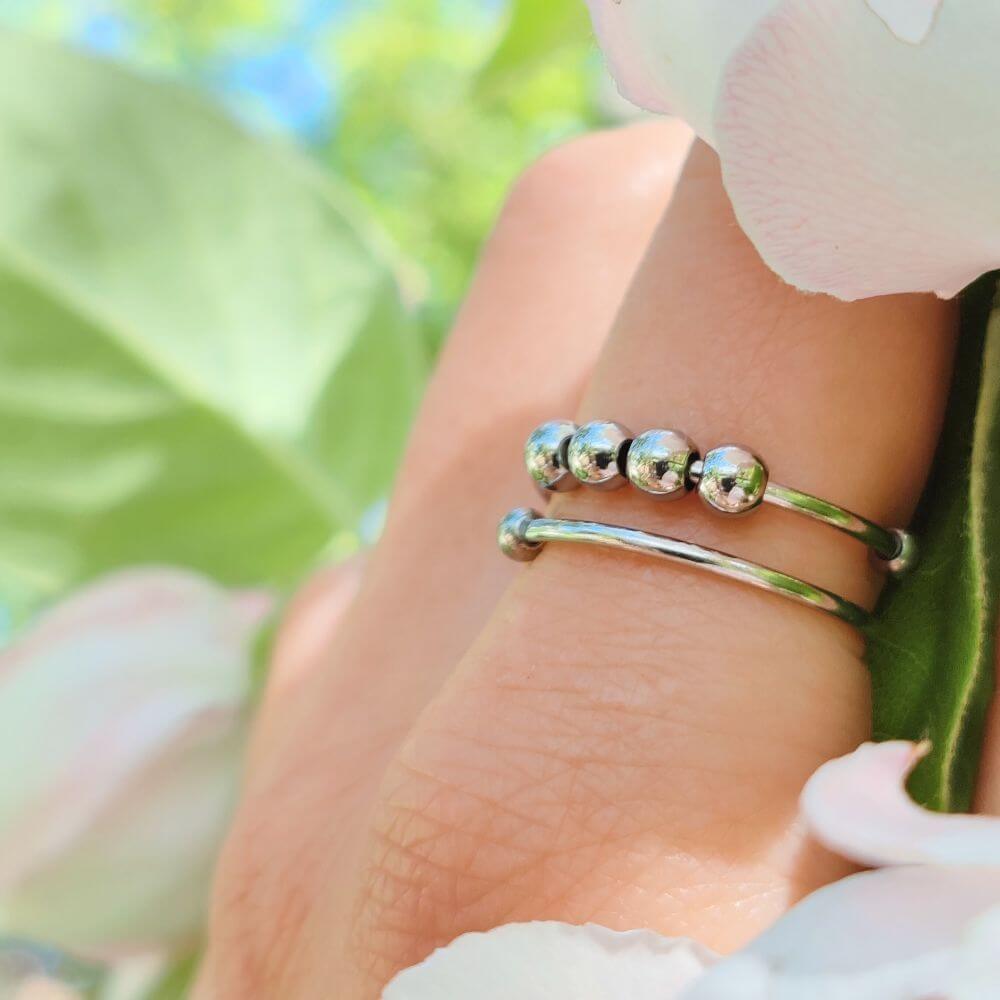 Klasszikus fidget gyűrű, csúsztatható és forgatható gyöngyökkel.